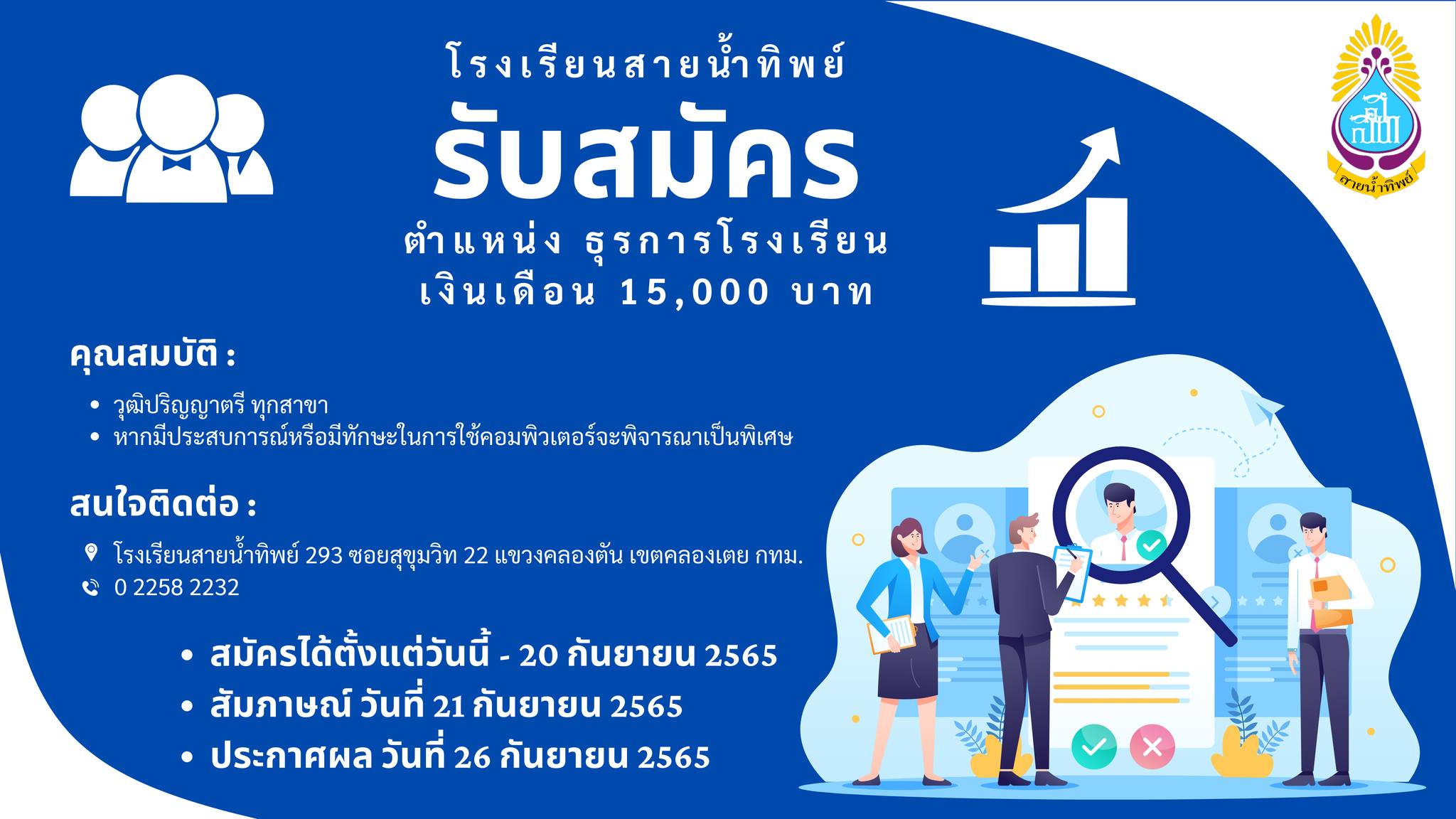 รับสมัคร ตำแหน่ง ธุรการโรงเรียน